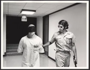 Nei sotterranei dell’università fu allestita una prigione simulata, completa di celle, regolamenti rigidi e procedure controllate. I prigionieri furono “arrestati” dai poliziotti fittizi, trasportati nel carcere simulato e sottoposti a procedure tipiche di una prigione reale: furono denudati, registrati e dotati di numeri identificativi. La vita quotidiana era rigidamente regolamentata: orari precisi, restrizioni fisiche e attività imposte dalle guardie. Fin dai primi giorni, queste ultime iniziarono a esercitare un’autorità sorprendente: inventavano punizioni arbitrarie, stabilivano regole assurde e, in alcuni casi, manifestavano aggressività psicologica verso i prigionieri, testando i limiti della loro obbedienza e conformità. I prigionieri reagirono in modi differenti: alcuni si ritirarono emotivamente, altri svilupparono ribellioni simboliche, mentre alcuni furono sopraffatti dall’ansia e dallo stress, mostrando segni di crisi emotive tali da dover essere rimossi dall’esperimento. In pochi giorni, ciò che era stato concepito come una simulazione si trasformò in un microcosmo sociale in cui il potere dei ruoli modellava profondamente le interazioni.